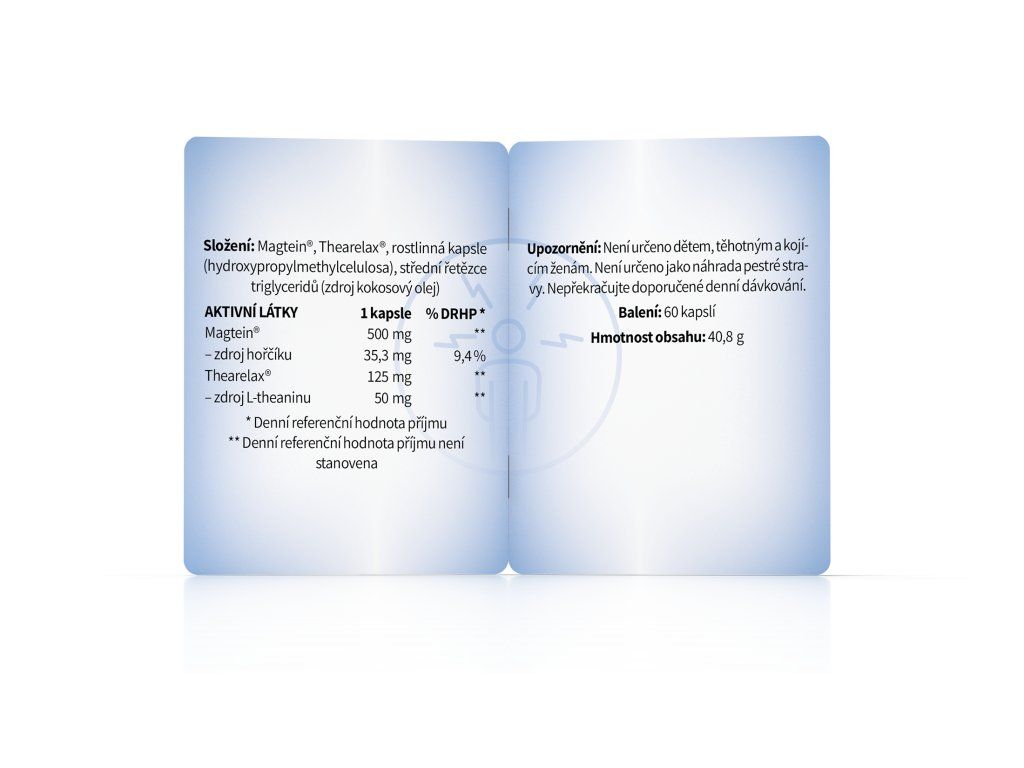Magtein®, Thearelax®, rostlinná kapsle (hydroxypropylmethylcelulosa), středně řetězcové triglyceridy